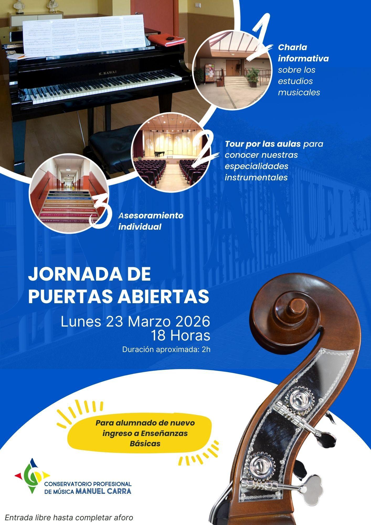 Alumnado de nuevo ingreso. Ven a conocer todos nuestros instrumentos. Charla informativa y Tour. Descarga nuestro Flyer