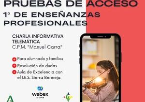 Charla telemática sobre las pruebas de acceso a 1º EEPP e información del Aula de Excelencia Artística